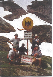 Im Juni 1989 stand unsere erste Tour außerhalb des Berchtesgadener Landes an . Es zog uns nach Oberstdorf. Von Spielmannsau stiegen wir auf zur Kemptner-Hütte wo wir zufällig in den Geburtstag des Hüttenwirtes “ schneiten”. Schnee gab es wirklich genug und zwar so viel, daß unsere geplante Tour über den “Heilbronner Weg “ nicht begehbar war. So machten wir am nächsten Tag einen Tagestrip auf den großen Krottenkopf und auf den Kratzer.Nach einer weiteren Übernachtung an der Kemptner-Hütte stiegen wir nach Spielmannsau ab und setzten unsere Tour im Stillachtal fort. Nach dem Fellhorngipfel wanderten wir zur Fiderepaß-Hütte wo wir auch übernachten wollten. Nach einem zünftigen Hüttenabend und einigen Diskrepanzen mit dem Hüttenwirt , stiegen wir gegen 22:30 Uhr bei strömenden Regen in Richtung Kleinwalsertal ab. Diese Nacht verbrachten wir also auf den Beinen und unter dem Dachüberstand eines Heuschobers und die letzte Nacht im Hotel Weinklause in Oberstdorf nachdem alle Vermissten wieder gefunden wurden. Aber da war es auch ganz nett.