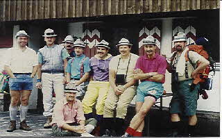 Unsere erste Tour in Österreich führte uns ins Stubaital. Nach einem Aufstieg von der Grabaalm über die Sulzenaualm erreichten wir die Sulzenauhütte am Sulzenaugletscher. Nach einer Übernachtung ging es weiter übers Niederl zur Nürnberger Hütte und nach einer kurzen Rast weiter übers obere Simmingjöchl zur Bremer Hütte. Das wir wieder einmal mit schlechtem Wetter zu kämpfen hatten , versteht sich von selbst. Nach einer windigen Nacht führte uns der Weg zur Innsbrucker Hütte wo wir bei Gittarenmusik der Spitzenklasse einen zünftigen Abend verlebten. Der Abstieg zur Pinnisalm am nächsten Tag war nur kurz , dafür der Abend an der Alm recht lang und feucht. Bei Seemannsliedern!! und Hüttenmusi soll sogar jemand seine Haarpracht dem Kerzenlicht geopfert haben( armer Sigi). Bei dieser Tour kam auch ertsmals unser Bodenpersonal zum Einsatz . Unsere Frauen sowie Wolfgang und Joschi erwarteten uns an der Pinnisalm bei Christel , Toni , Gabi und Christian .... der Beginn einer wunderbaren Freunschaft zu den Wirtsleuten , die bis heute gepflegt wird.Dies war unsere erste Übernachtung an der Pinnisalm und es sollte nicht die letzte bleiben